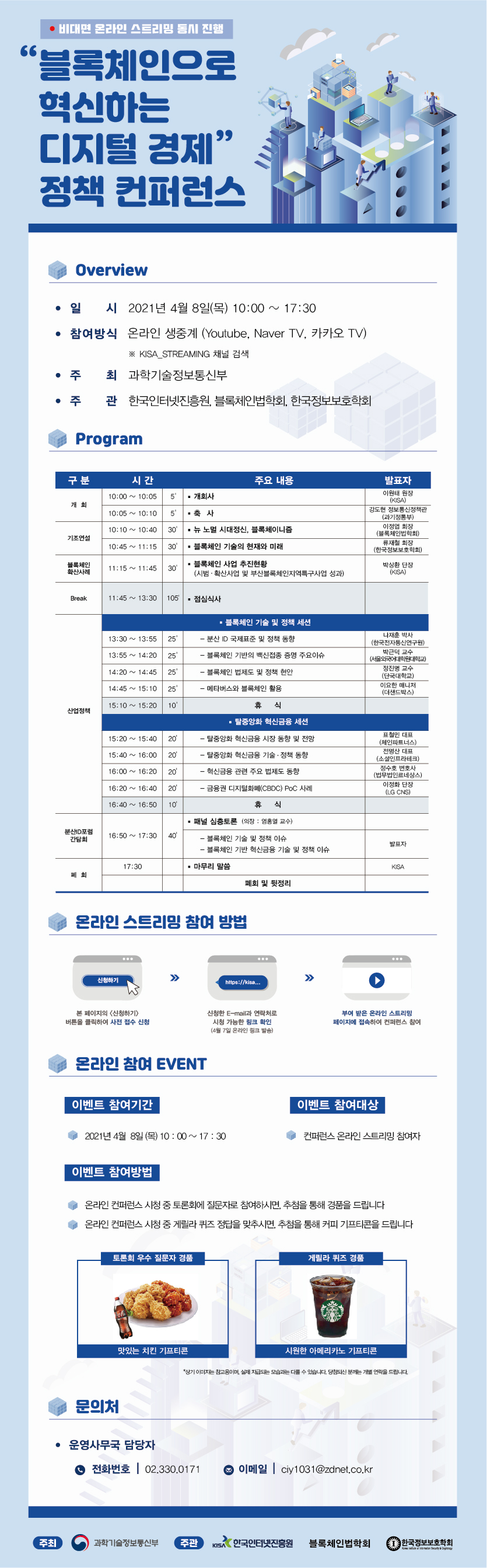 ㅇ 참여방식 : 온라인 생중계 (유튜브, 네이버TV, 카카오TV에서 'Kisa_streaming' 검색)