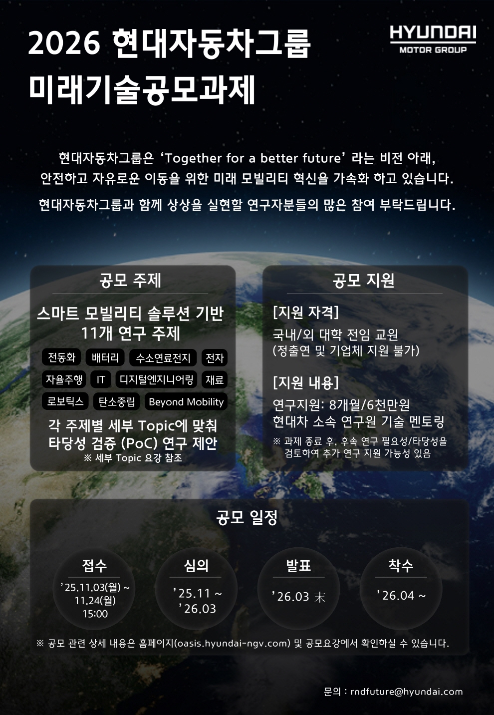 [현대자동차그룹] 2026 미래기술공모과제 접수 안내