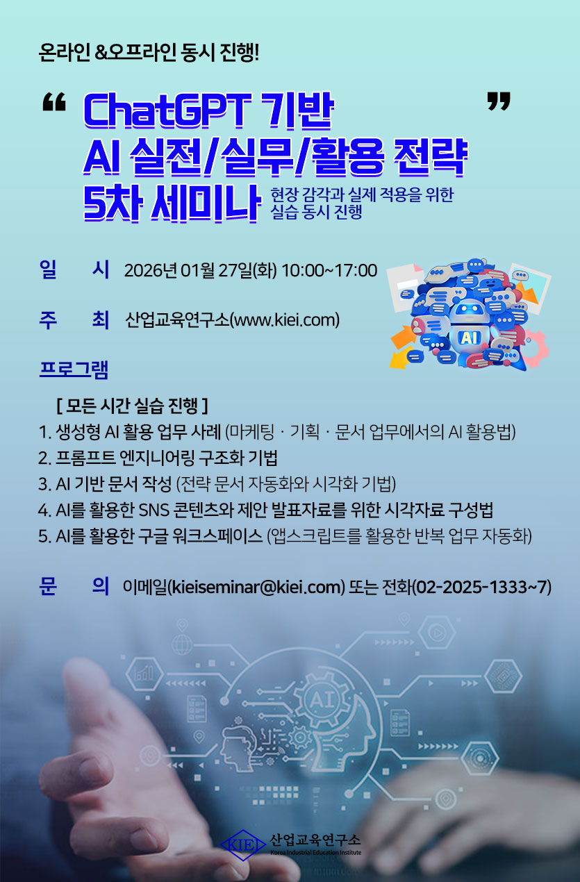 [산업교육연구소] ChatGPT 기반 AI 실전/실무/활용 전략 5차 세미나 안내