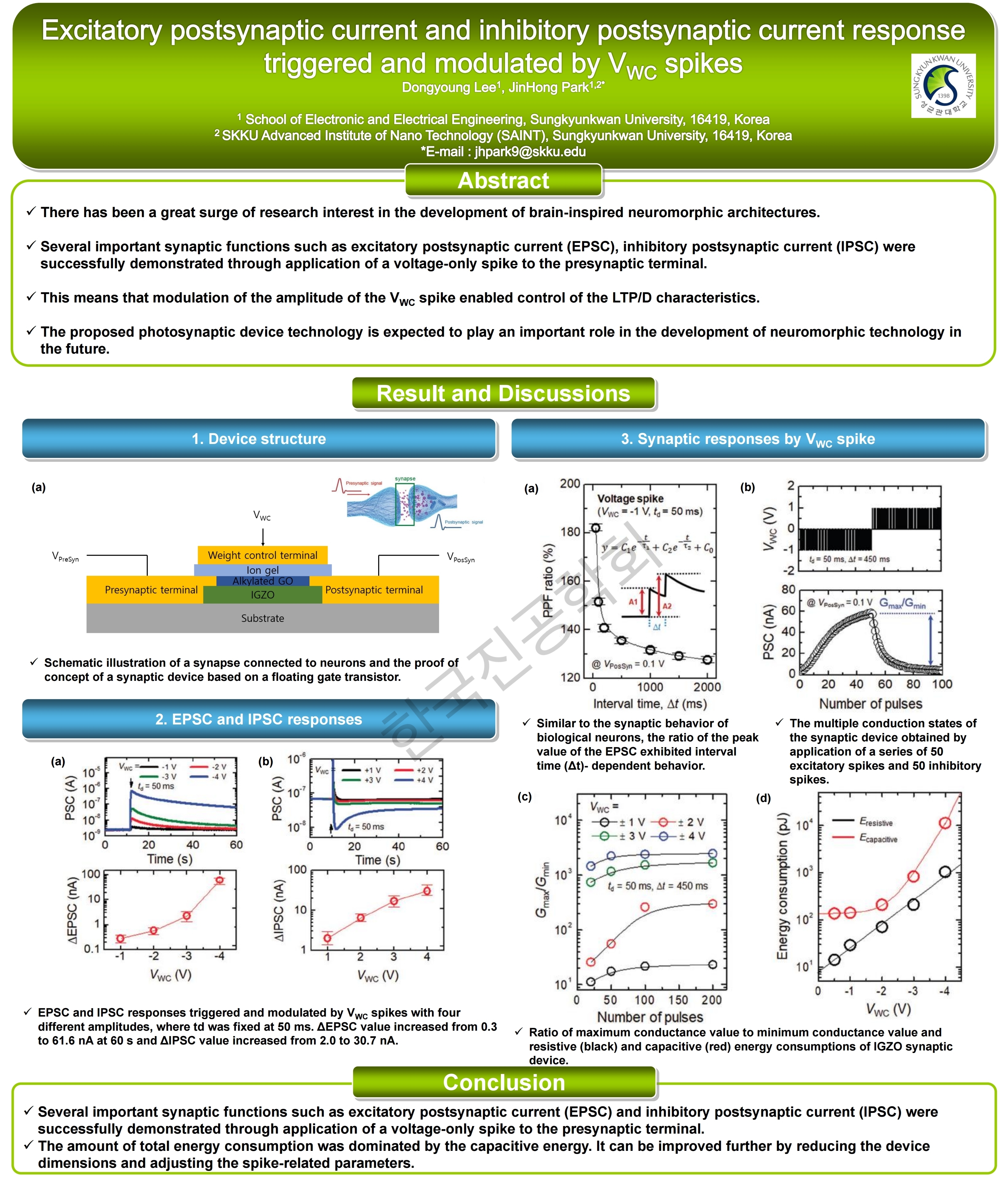 Excitatory postsynaptic current and inhibitory postsynaptic current response triggered and modulated by VWC spikes