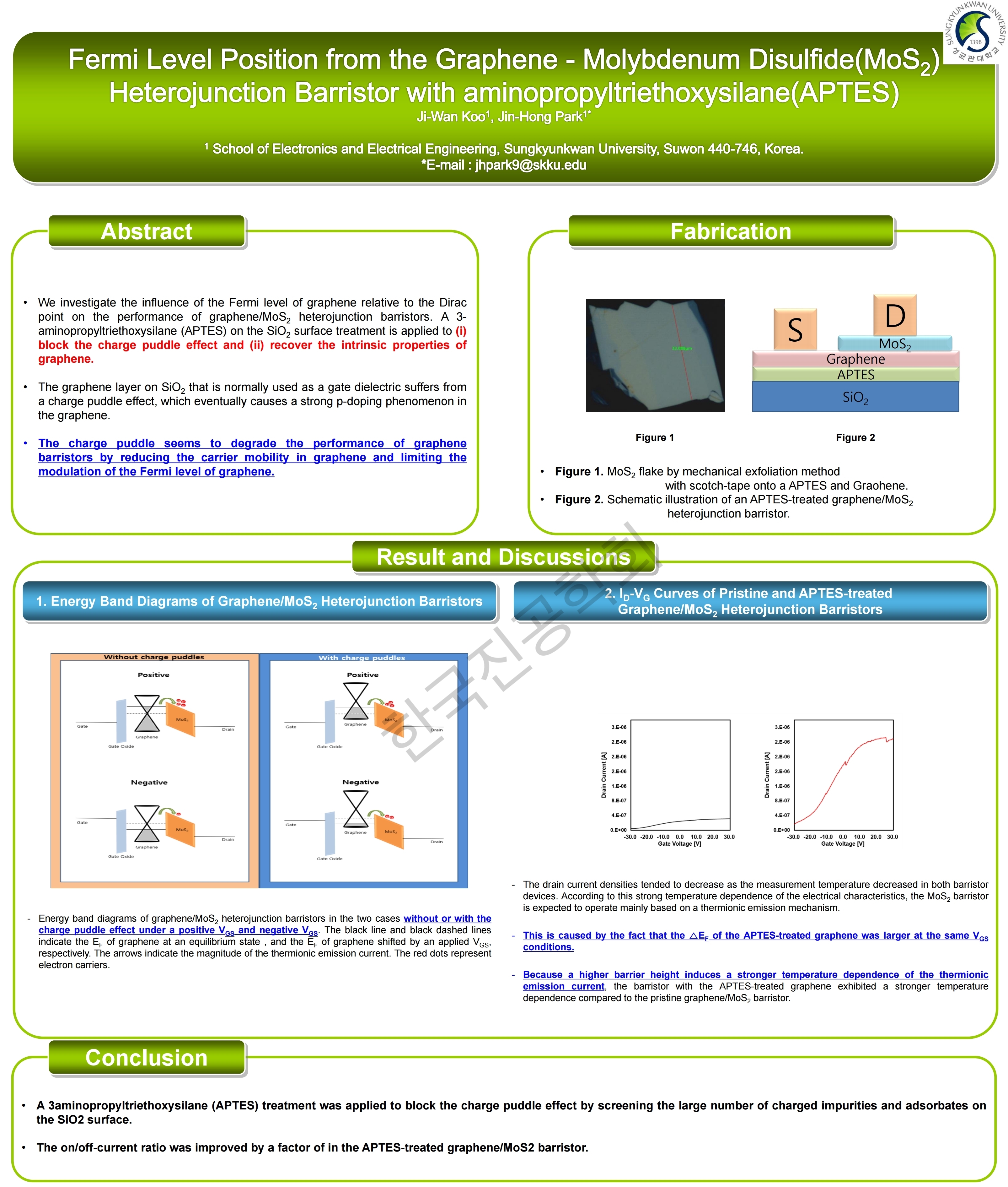 Fermi Level Position from the Graphene - Molybdenum Disulfide(MoS₂) Heterojunction Barristor with aminopropyltriethoxysilane(APTES)